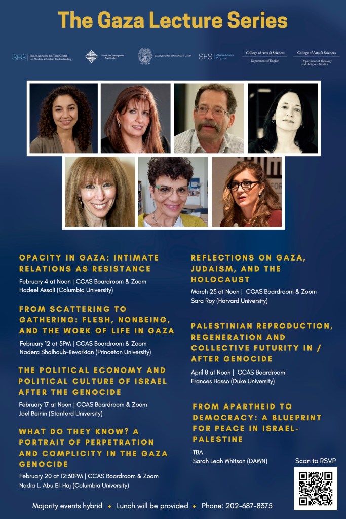 We organize and promote activities on the Georgetown University campus that serve to educate the community about the history of Palestine/Israel, the ongoing struggle for Palestinian rights,